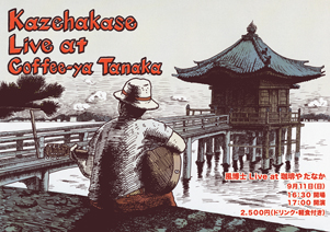 風博士が、今度は滋賀県の「珈琲や たなか」でライブをします。